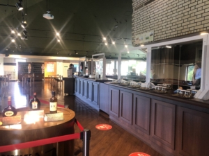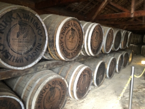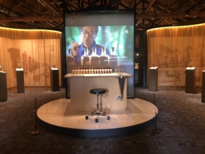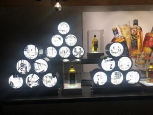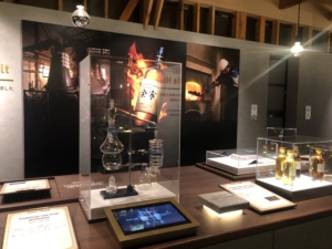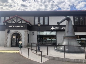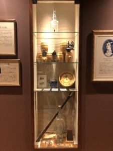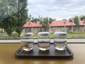 ニッカ会館の二階にある試飲会場 スーパーニッカ、アップルワイン、シングルモルツの3種類の試飲ができました。