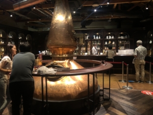 蒸留窯 もろみを加熱し、アルコール分と香味成分を抽出します。 余市蒸留所では、石炭直火蒸留によって重厚でコクのあるモルト原料を作っています。 現在人の手で石炭を燃やし蒸留しているところはここ余市だけとの説明でした。