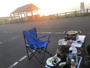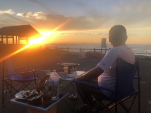 今夜の宿は道営野塚野営場 砂浜に設けられた炊事場・トイレ付きの無料のキャンプ場。 砂浜や草地を利用して、美しい積丹プル―の海を目前にキャンプができました。 今日は金曜日と言う事で10人程度のキャンパーが来てキャンプを楽しんでいました。 暫くぶりに、私達もプルミエGOの隣にイスとテーブルをセットして夕日を見ながら焼肉🥩🍖🍶🍺🍻を楽しみました。 これが旅の醍醐味ですね・・!😄😄😄