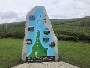 昨日は晴れたり曇ったり、また夕方にはスコール⛈️⛈️⛈️みたいな大雨が降ったりでキャンプ🏕️🏕️🏕️に来ている人達はテントが風に飛ばされない様に、ずぶ濡れになりながら大忙しそうでした。 私達のいる駐車場も20台程度で満杯、キャンプをしている家族や友達同士のテントも15張程ありましたが、雨が降ったり、風が吹いたりしても皆さんとても楽しそうでした。 朝9時過ぎると帰る準備を始めるチームもあり、その様子を見ているとテントをかたずけ、ゴミを回収、そして原状復帰をしてから出発していました。 殆どのキャンパーはマナーを守って行っているのに極一部の方の為に色々言われているのが残念ですね~😅😅😅。 それでは私達も出発🚍💨 最初の観光地・神威岬(かむいみさき)に到着。 台風みたいな強風が吹いており、看板にも強風につきドア開放時注意と書いてありました。 地形状強風が吹く場所とのことでした。