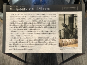 以前、神威岬に建てられていた灯台のレンズ 駐車場内にあるレストハウスの二階に展示されていました。