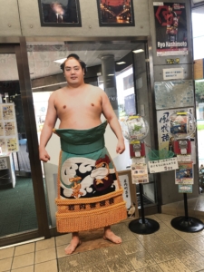 新入幕を果たした、岩内町出身力士「一山本関」の等身大パネル