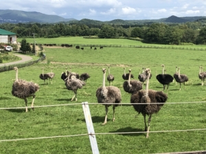第二有島ダチョウ牧場 ニセコ町のふるさと眺望点に選ばれている、眺めの良い牧場です。 北海道らしい広々とした牧場に悠々と歩き回るダチョウの様子と羊蹄山やニセコアンヌプリなどの山々がとてもとても素敵で、日本とは思えない美しさでした😍😍😍。 一袋100円でダチョウの餌を購入して食べさせましたが、餌を怖い位の勢いで食べて驚きました。 4人で来ていたある家族は長男は手を突かれ、次男は手を食べられ大声で泣いていました。 また、お父さんも凝り性なく餌をやって手に傷をつけていました😅😅😅。 面白い家族でした。