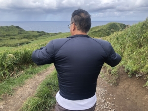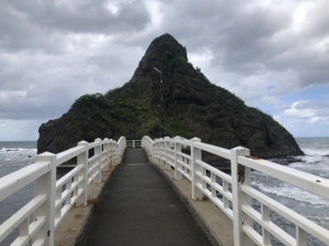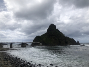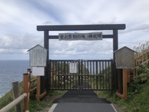 この日は風が強く女人禁制の門は封鎖されていました。 現在は男女ともに通行でき、女人禁制の門から先端までは、両側に日本海の雄大な眺めが広がる遊歩道「チャレンカの小道」を進むとダイナミックな大海原の丸みを帯びた水平線を見ることができるとの事でした。