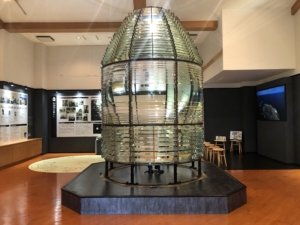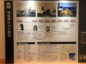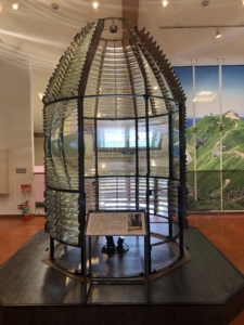 以前、神威岬に建てられていた灯台のレンズ 駐車場内にあるレストハウスの二階に展示されていました。