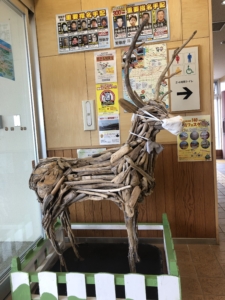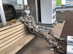 道の駅「オスコイ!かもえない」の内外に展示されていた海岸に流れてきた流木で出来た造形人形 とてもユニークでした😆😆😆。