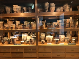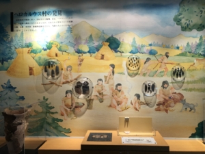 大昔の生活ぶりがわかる土器類 泊発電所建設に伴い、周辺6か所の遺跡から数多くの埋蔵文化財が発見され、復元・展示されていました。
