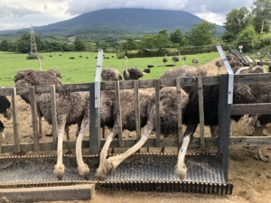 第二有島ダチョウ牧場 ニセコ町のふるさと眺望点に選ばれている、眺めの良い牧場です。 北海道らしい広々とした牧場に悠々と歩き回るダチョウの様子と羊蹄山やニセコアンヌプリなどの山々がとてもとても素敵で、日本とは思えない美しさでした😍😍😍。 一袋100円でダチョウの餌を購入して食べさせましたが、餌を怖い位の勢いで食べて驚きました。 4人で来ていたある家族は長男は手を突かれ、次男は手を食べられ大声で泣いていました。 また、お父さんも凝り性なく餌をやって手に傷をつけていました😅😅😅。 面白い家族でした。