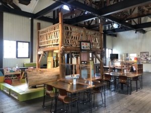 旧でんぷん工場を回収したお洒落なレストランの内部
