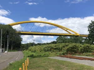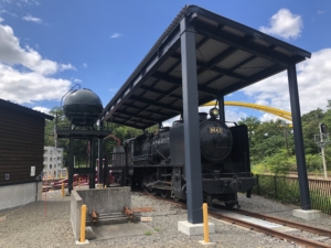 ニセコ鉄道遺産群 1953年までこの場所に旧簡易軌道真狩線狩太駅や軌道の転車台があり、国鉄時代の貨物積み替え場所に2021年夏に誕生しました。 クラウドファンディングによって全国から支援をいただき、この場所に保存ができるようになったそうです。