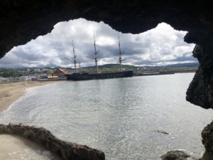 開陽丸 幕末にオランダで建造され、明治元年に江差沖で座礁、沈没した開陽丸を平成2年4月に実物大で復元。 引き揚げ作業で発掘された遺物およそ33.000点の内、約3,000点が展示されています。 船内には大砲の発射音や操縦シミュレーションなどの体験コーナーもありました。