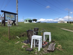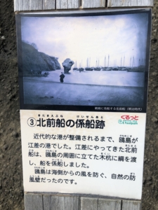 散策路を進むと大きな杭を打ったような「北前船係船柱や係船跡」有りました。