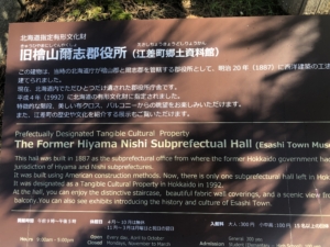 散策路に沿ってぐるり歩いていくと、「江差商人の宴会跡」が見えます。 ニシン交易で利益を得た商人が、宴の為にここに仮小屋を建てたのだとか。