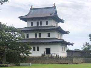松前城(正式には福山城) 日本で最後(1606年)に築城された日本最北の城郭で、「日本100名城」、「北海道遺産」にも選定されています。 現在の城は昭和38年に復元されたもので、当時の松前城の建物として現存しているのは本丸御門だけです。 また、幕末から明治にかけて戊辰戦争では、新選組副長の土方歳三が攻め込んだ歴史あるものお城です。