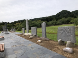 松前藩主松前家墓所 松前の歴代藩主やその家族など55基の墓があり、石つくりの物が多く、北前船交易によって北陸地方からもたされた笏谷石や御影石が使用されていました。