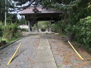城の山側を守るように配置された15の寺院からなる寺町は、明治維新の戦乱でそのほとんどがが焼失し、現在5つの寺のみが残っているそうです。 その寺の門が倒れないようにワイヤーロープで四つ角を支えていました。