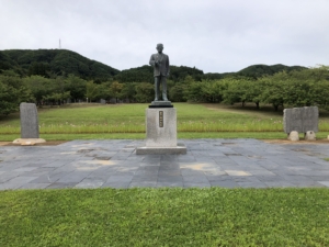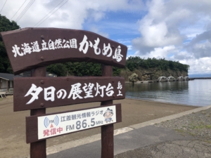 昨夜の雨も上がりいい天気🌞🌞🌞になりました。 暗くて雨が強くて分かりませんでしたが駐車した近くに面白い自作ぼい人形の銅像がありました。 説明文を読んでみると江戸時代に江差に実在していた、とんちと笑いを振りまいた繁次郎さんの像との事でした。 台座には「笑え、わらえば ええことあるで」と書いてありました😄😄😄。 朝食も済ませ近くのかもめ島へ向かいます🚍💨。