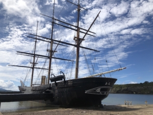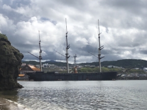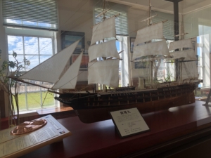 開陽丸 幕末にオランダで建造され、明治元年に江差沖で座礁、沈没した開陽丸を平成2年4月に実物大で復元。 引き揚げ作業で発掘された遺物およそ33.000点の内、約3,000点が展示されています。 船内には大砲の発射音や操縦シミュレーションなどの体験コーナーもありました。