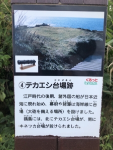 散策路を進むと大きな杭を打ったような「北前船係船柱や係船跡」有りました。