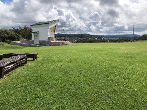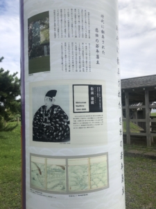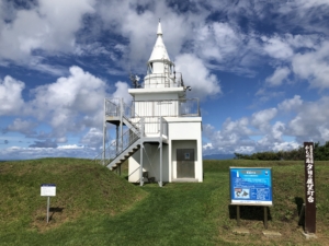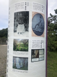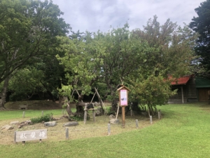 散策路に沿ってぐるり歩いていくと、「江差商人の宴会跡」が見えます。 ニシン交易で利益を得た商人が、宴の為にここに仮小屋を建てたのだとか。