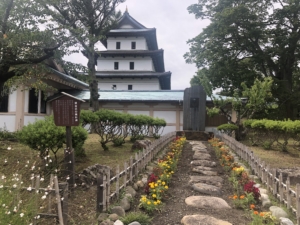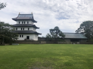 松前城(正式には福山城) 日本で最後(1606年)に築城された日本最北の城郭で、「日本100名城」、「北海道遺産」にも選定されています。 現在の城は昭和38年に復元されたもので、当時の松前城の建物として現存しているのは本丸御門だけです。 また、幕末から明治にかけて戊辰戦争では、新選組副長の土方歳三が攻め込んだ歴史あるものお城です。