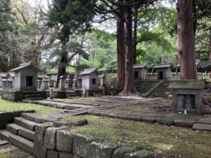 松前藩主松前家墓所 松前の歴代藩主やその家族など55基の墓があり、石つくりの物が多く、北前船交易によって北陸地方からもたされた笏谷石や御影石が使用されていました。