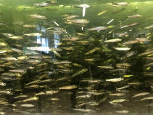 数千匹のイワシが泳いでいる水槽