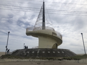 九十九里ビーチタワー 巻貝をモチーフにした高さ22mの塔で展望台にはらせん階段がつけられ、上の事ができる。 展望台からは白浜青松の九十九里の海岸線と太平洋が一望できました。 また、「ちば眺望100景」にも選定されているそうです。