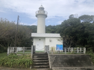 太東崎灯台 白亜塔形(円形)の中型灯台で、高さ15.9m。 灯台の光は22海里(約41㎞)まで照らしているそうです。 地元のNPO法人太東崎灯台クラブが管理しているようでとても奇麗に管理されていました。 また近くに戦時中に利用された電波探知機礎石(戦争遺構)があり興味深い遺構でした。
