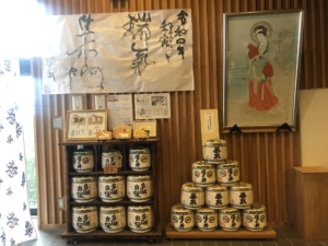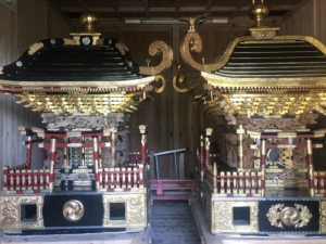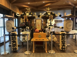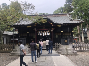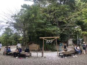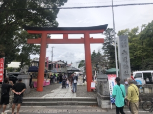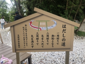 玉前神社 平安時代の「延喜式神名帳」に名があがる、上総国の一の宮。 神武天皇の生母とされる玉依媛命を祭神に、漆黒の社殿や古木が立ち並ぶ境内はどっしりした風格があり、源頼朝や平廣常も尊崇したと言われています。 収蔵品の「銅鏡」は国重要文化財となっています。 私達が参拝に行った時は「上総十二社祭」が開催され境内には沢山の見物客が来ていました。 また境内には「子授けイチョウ」や「裸足の道」などがありました。