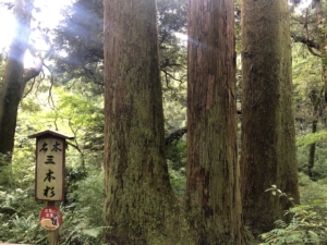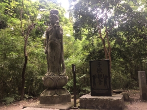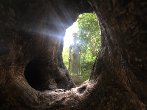 笠森観音 笠森寺は、天台宗・別格大本山。 延暦3年(784年)に最澄上人が楠の霊木で十一面観音菩薩を刻み安置・開基されたと言われる古刹です。 坂東三十三観音札所の第三十一番札所として、古来より巡礼の霊場として知られています。 十一面観音像が本尊なのであることから通称「笠森観音」とも呼ばれています。 大岩の上にそびえる観音堂は、長元元年(1028年)、後一条天皇の勅願で建立され、六十一本の柱で支えられた四方懸造は、特異な建築様式で全国でも珍しい日本唯一の構造で国指定の重要文化財です。 笠森寺まで登る自然林の参道を登って行くと途中に銘木三本杉と穴が開いているクスノキがありました。 その向こうを見ると観音様が輝いていて、とても神々しく心洗われる思いでした。