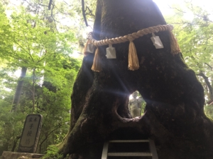社殿裏のトンネル(風穴)があって、向こう側の竹林が見えるように写真を撮るのがおすすめポイントだそうです。 それでトンネルをくぐる姿を写真に撮ると瞳の様に見える事から「瞳のトンネル」と呼ばれています。 私がトンネルの中に立ってみましたがいかがでしょうか? 瞳に見えましたでしょうか⁇😅😅😅。