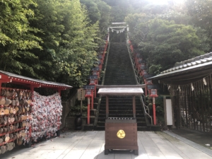 遠見岬神社 房総半島に技術と文化をもたらした天冨命(あめのとみのみこと)を祀る古社。 江戸時代、「勝浦三町江戸勝り」と謳われた勝浦の繁栄を見守ってきたそうです。 「かつうらビックひな祭り」の石段のある神社として有名で、60段に1800体ものひな人形が並び、全国から春の開催時期には約17万人が訪れるそうです。