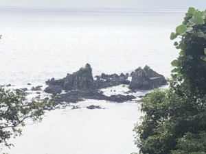 つり橋を過ぎると「城ケ崎ブルース」の歌碑と海面から切り立った岩が突き出していました。