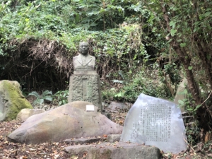 吉田茂の像 日米講和条約締結の地、サンフランシスコと首都ワシントンの方向に顔を向けていると言われています。