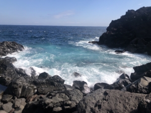 黒根岩風呂 波打ち際にある岩風呂。 ミネラル豊富な天然温泉で入浴しながら見晴らしのいい眺めを楽しめる露天風呂ですがシャワーや洗い場が無いとの事で諦めました。