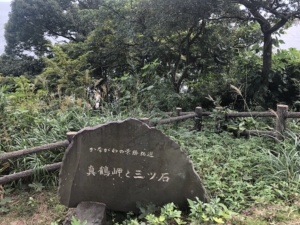真鶴岬と三ッ石 神奈川県舞鶴町にある太平洋に突き出した岬が真鶴岬(まなづるみさき)。 岬の突端、海面に巨石が3つ突き出したように見える場所が、三ッ石と呼ばれる景勝地です。 海岸から200mにわたって続く岩礁の先にあって、干潮時なら三ッ石まで歩いて渡ることができるそうです。