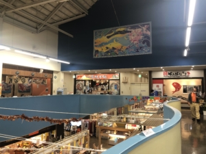 道の駅「伊藤マリンタウン」 伊豆半島の玄関口、伊東温泉の入口に位置するカラフルな建物にはおみやげ、レストランなど21店舗と天然温泉、遊覧船、無料足湯など伊豆の海を身近に感じる事のできる海辺の街でした。 2010年9月23日発行の週刊文集で「訪れたい道の駅」で日本一に選ばれただけあって約300台くらい入る駐車場は満車状態でした。