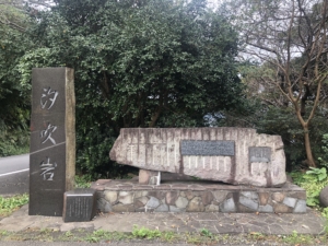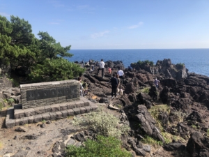 つり橋を過ぎると「城ケ崎ブルース」の歌碑と海面から切り立った岩が突き出していました。