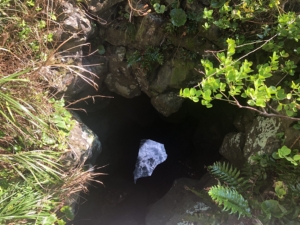 城ケ崎駐車場で昼食後、今度は反対方向の遊歩道ピクニカルコースへ。 ニューヨークランプから吊り橋までの間に穴口があり、上から覗き込むと海面が見えました。