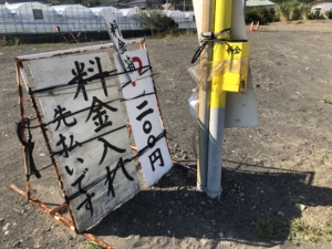 久能山東照宮に登る参道近くの駐車場では係りの方が呼び込みをしていましたが、少し離れた場所では勝手に料金箱200円を入れて駐車OKの看板があり駐車しました。 この辺はイチゴのハウスが沢山有って、いちご狩りが無い時のアルバイト❓かな。 有料の駐車場しかない場所では私達には有難い事です。