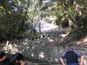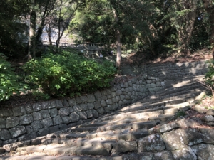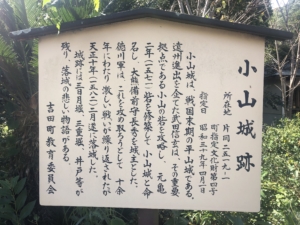 小山城には急な階段を登って行きます。 あまりにも急なので四つん這いになって登らないと危険を感じました。