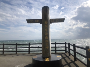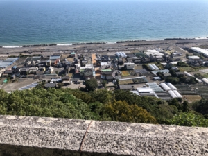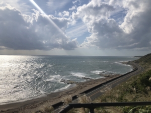御前崎の遊歩道を登って行く途中のこの場所から水平線を見ると本当に地球が丸いと言う事が実感できました。