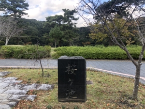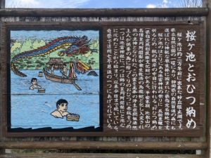 池宮神社の鳥居と桜ヶ池とおひつ納めの伝説