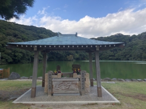 池宮神社 御前崎市佐倉地区、遠州七不思議「龍神伝説」でゆうめいな桜ヶ池のほとりにたたずむ神社。 神社拝殿や資料館には、歴史的価値の高い書などが展示されています。 お彼岸の中日には、平安時代から約850年以上続く神事、お櫃納めが行われているそうです。
