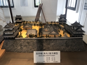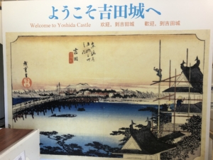 昼食後、園内を散策すると無料で吉田城内を見る事ができたので入館しました。 吉田城は1,505年に築城された今橋城が後に改称されたもので、現在は昭和29年に復興された鉄櫓が豊川のほとりに立っています。