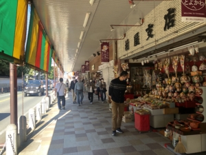 豊川稲荷表参道商店街 稲荷神社だけあってお稲荷さんやヤマサのちくわ、焼きたて煎餅などが売ってました。