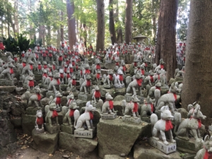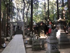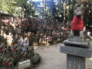 石で出来た狐🦊像が所狭しと並ぶ霊狐塚は、信者から献納された大小1000点以上の狐の石像であふれていて圧巻でした。 北海道で見た可愛い狐さんとは大分違うけどね・・😅😅😅。