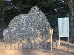 三河一ノ宮砥鹿神社 周囲を欅、楠の大樹に囲まれて、荘厳な檜造りの社殿が建ってました。 大己貴命をお祀りする里宮、古く平安時代より信仰あったようです。 境内には日本一大きいとされているさざれ石がありました。