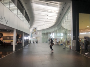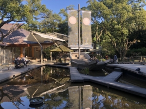境内にあったくさなぎ広場の売店とカフェ きしめん・アイスを食べたりして楽しんでいる家族ずれで一杯でした。